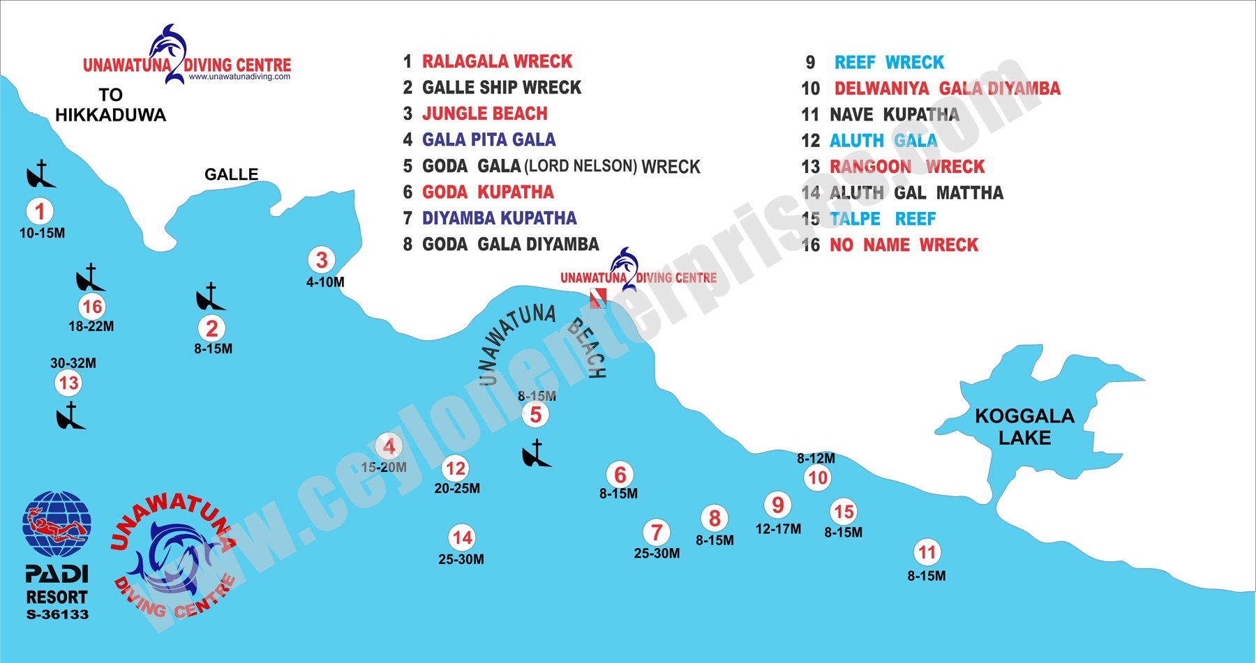Unawatuna und Galle bietet eine breite Vielfalt an Tauchplätzen: von Riffen über Pinnacles bis hin zu Wracks, geeignet für den Tauch - Anfänger bis hin zum Tauch - Experten.